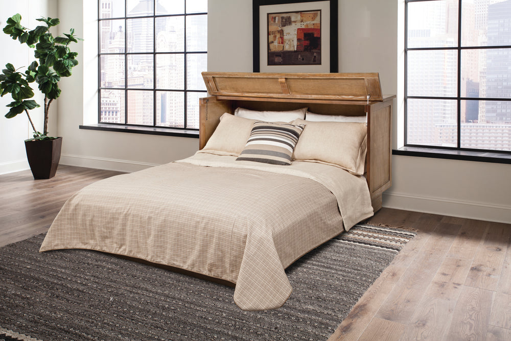 Our cabinet beds feature a concealed drawer in the bottom of the cabinet to store things such as pillows and blankets.