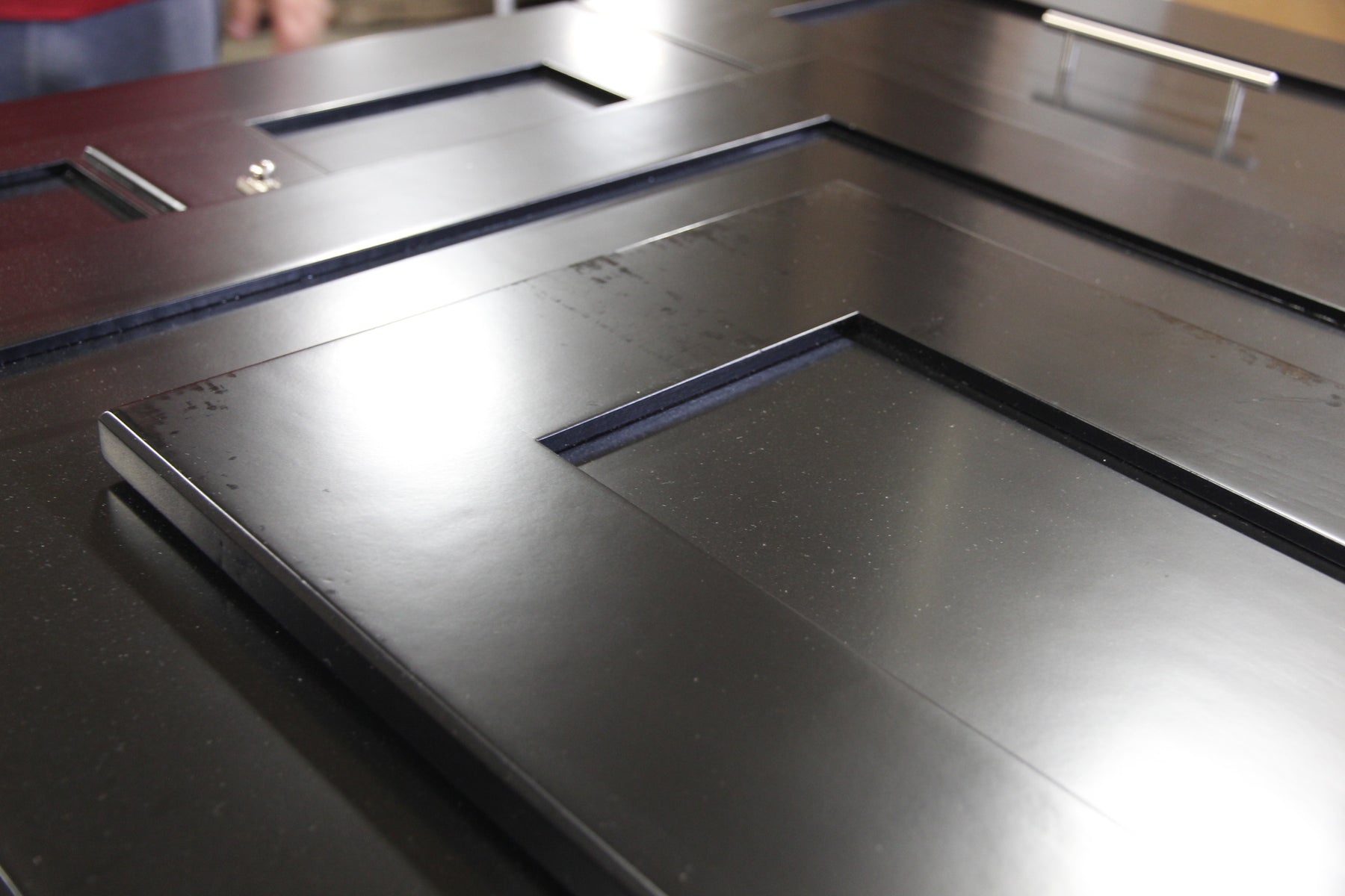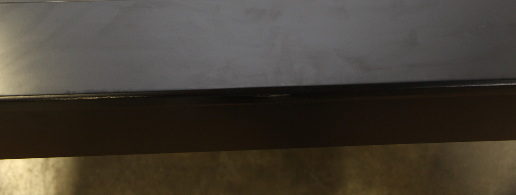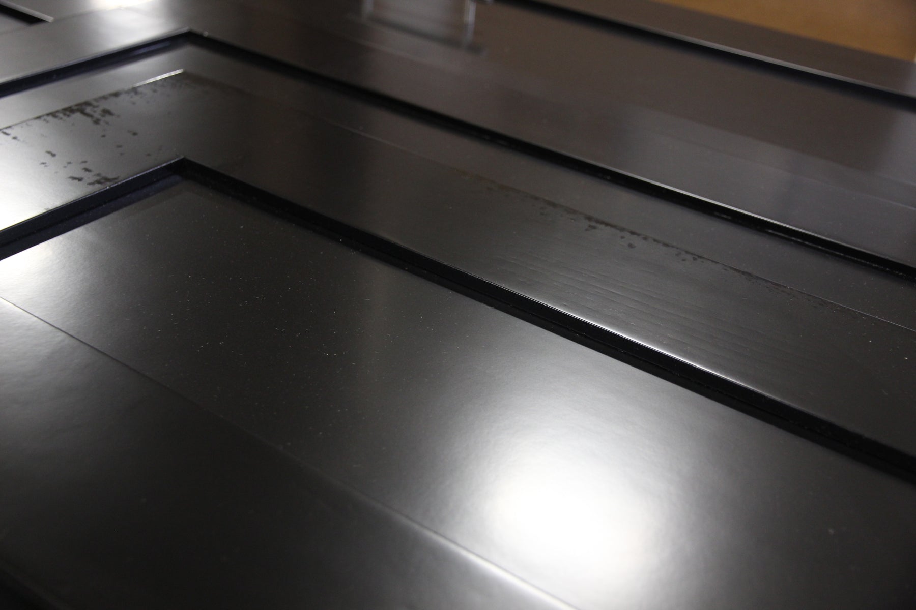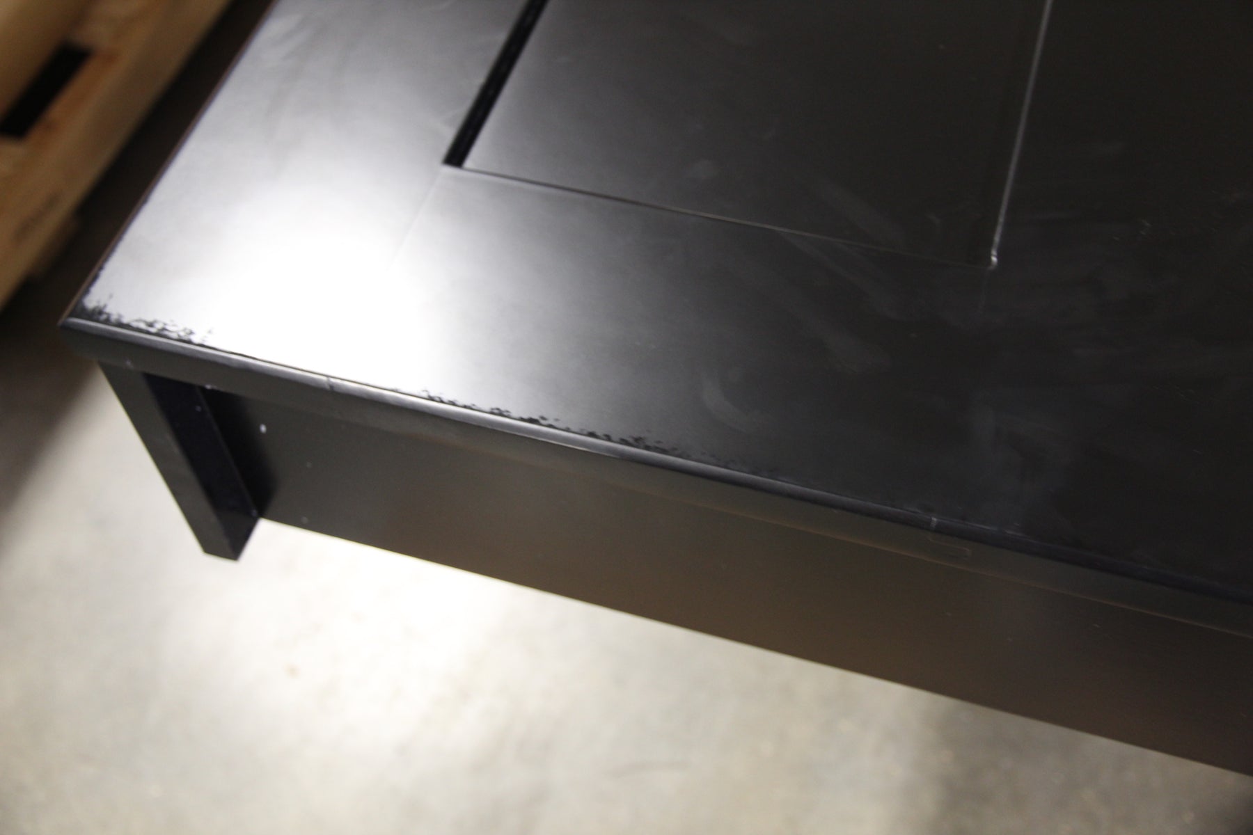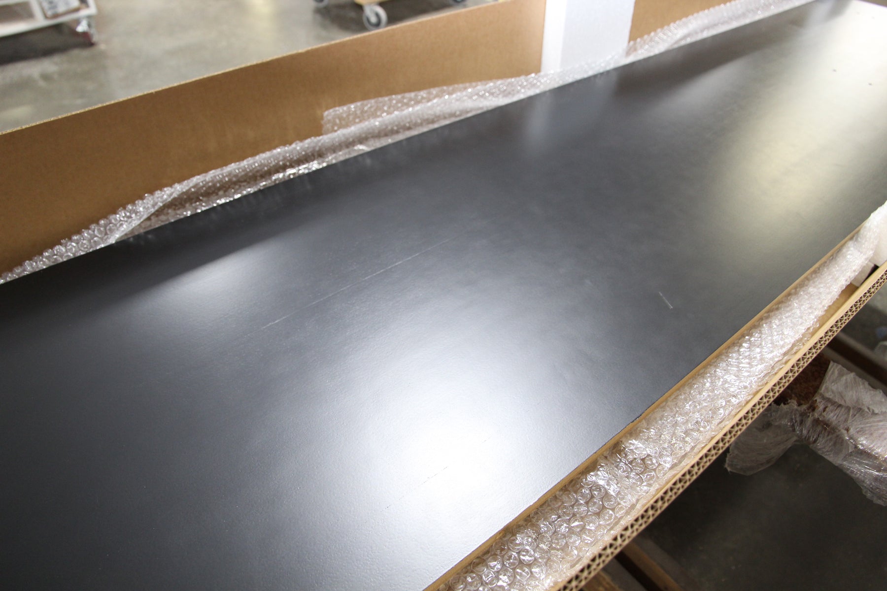 Vertical Queen Table Face Murphy Bed. This bed is built from Maple Wood and finished with our Black Pigmented Lacquer Paint with Brushed Chrome Contemporary Handles with Standard Crown. Baseboard notch is 5" x 1". THIS BED HAS BLEMISHES LOCATED ON THE OUTSIDE OF THE LEFT SIDE VERTICAL AND A VENEER SPLIT DOWN THE MIDDLE OF THE LEFT SIDE VERTICAL. THERE IS ALSO A BLEMISH LOCATED ON THE LEFT SIDE OF THE BED FACE. THERE ARE MULTIPLE RUB MARKS LOCATED ON ENTIRE BED FACE. THE TABLE LATCH IS SLIGHTLY OFF, BUT STILL LATCHES(SEE PICS BELOW). This bed is NEW and READY TO SHIP! sku#143-558
