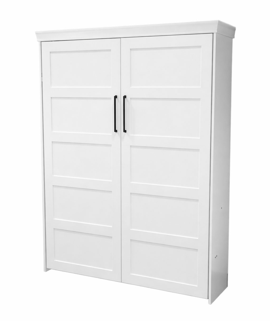 Beauty and simplicity best describe this multi-panel shaker-style Murphy bed. The Lake View face gives the appearance of two large doors with two modern 11.5 inch handles.