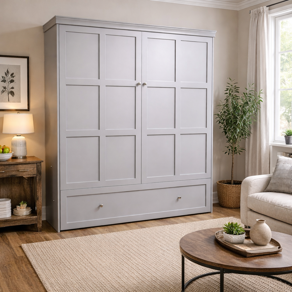*King size murphy beds are only available for select REAL WOOD VERTICAL bed styles. These styles are the V100, V107, and V121.